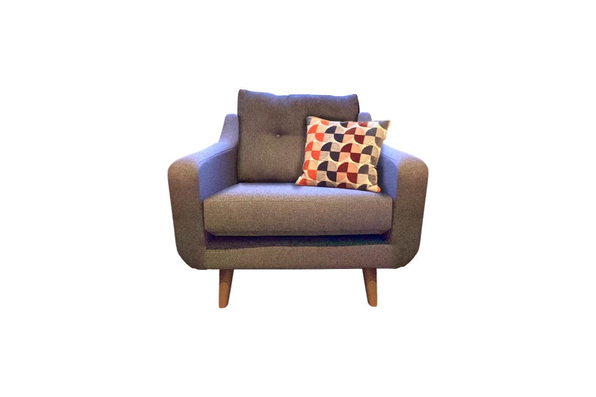 Our Banoffee armchair showcases a distinctive rounded silhouette that adds visual appeal to any room. The buttoned back cushion provides a tactile charm, while the sturdy, angled wooden legs ensure stability and style. Paired with responsibly sourced duck feather scatter cushions, this retro armchair offers both comfort and aesthetic appeal.Customise to Reflect Your Style
