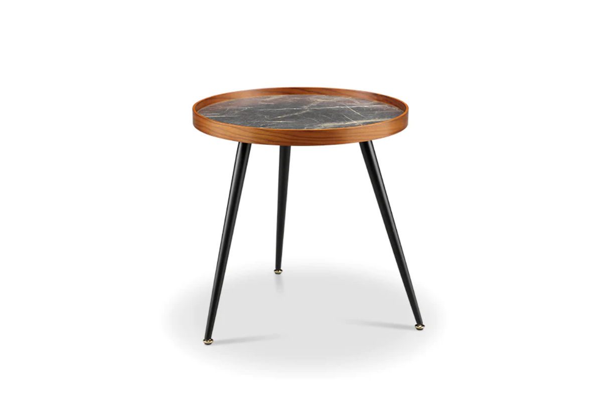 Our Marble Top Lamp Table – Zest Citron is a luxurious addition to any living space. Elegant and sleek black marble effect adding a touch of sophistication to the room that finishes off with real wood veneer tray top table and timeless black metal legs.